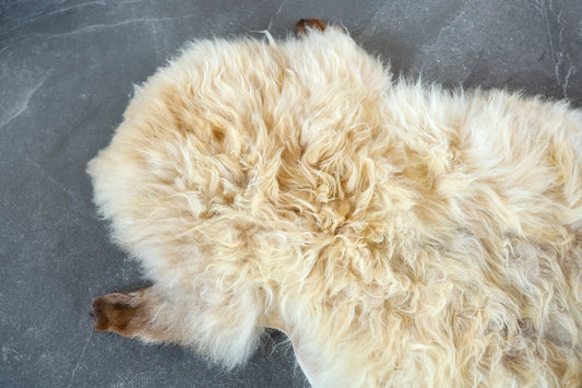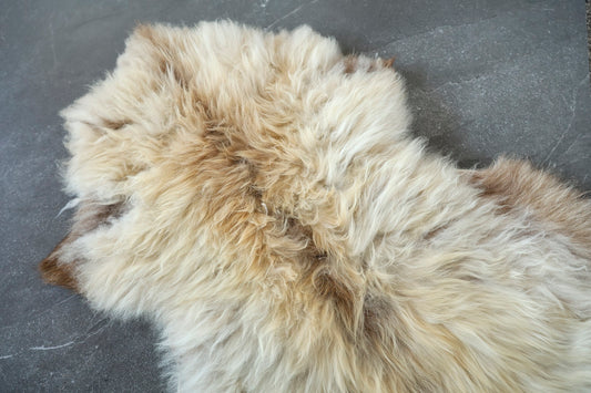 AusverkauftBio-Schaffell, beige mit braunen Details