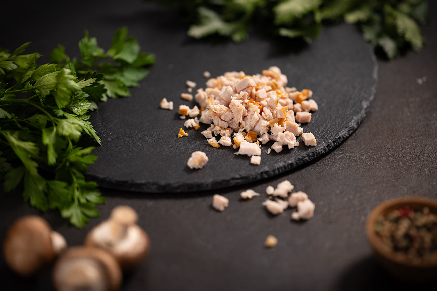 Unsere herzhaften Puten-Schinkenwürfel nach Saftschinkenart eignen sich ideal für Aufläufe oder Salate. Wer denkt hier nicht gleich an eine Nudel-Schinken-Pfanne? Aromatisch, mager und voll im Geschmack. In einer MAP-Schale verpackt und tiefkühlfähig.